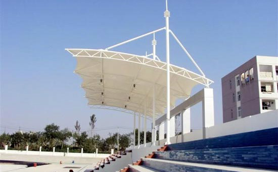 膜結(jié)構(gòu)看臺新式且新奇的構(gòu)造方式,因為其造型設(shè)計灑脫幽美、材料輕巧便于拆卸、有高寬比的自洗特性和耐老化工作能力,很多的新教學(xué)區(qū)基本建設(shè)都剛開始選用這類與眾不同時尚潮流的構(gòu)造方式;